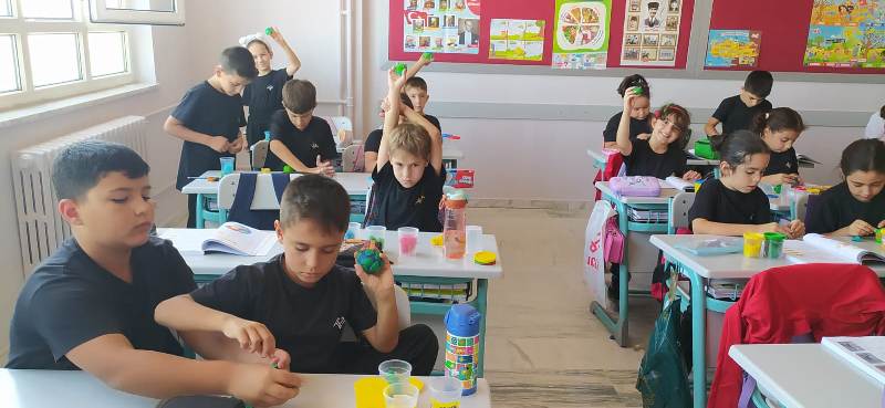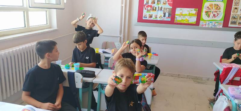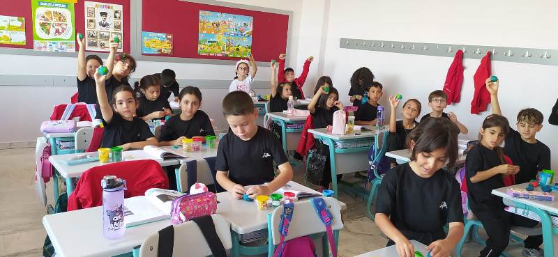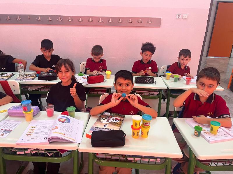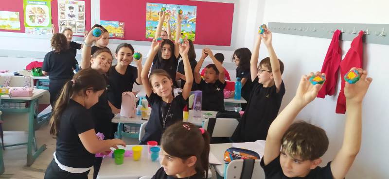 3. sınıf öğrencileri, Fen Bilimleri dersinde edindikleri kazanımları pekiştirmek amacıyla oyun hamurlarından Dünya modeli çalışması gerçekleştirdi. Etkinlik kapsamında öğrenciler, Dünya’nın katmanlarını farklı renklerde oyun hamurlarıyla modelleyerek somutlaştırdı.