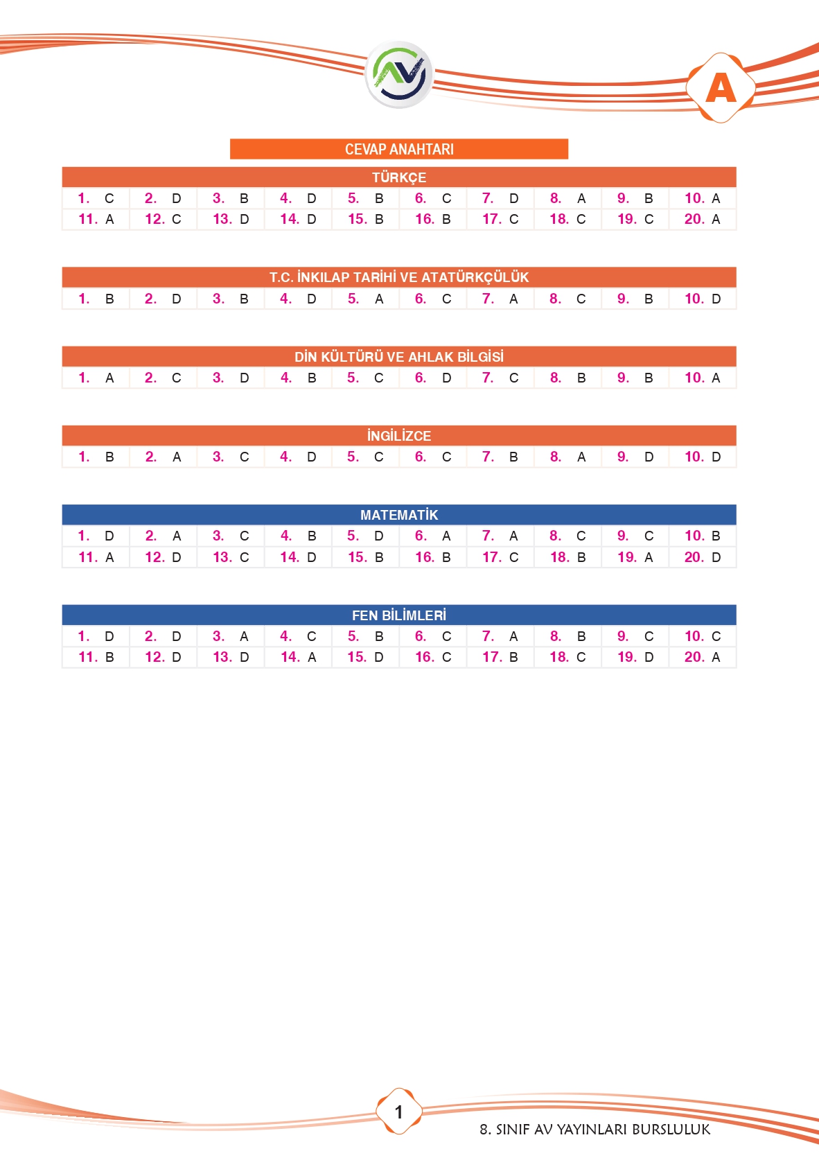 Enderun Bursluluk Sınavı Cevap Anahtarı