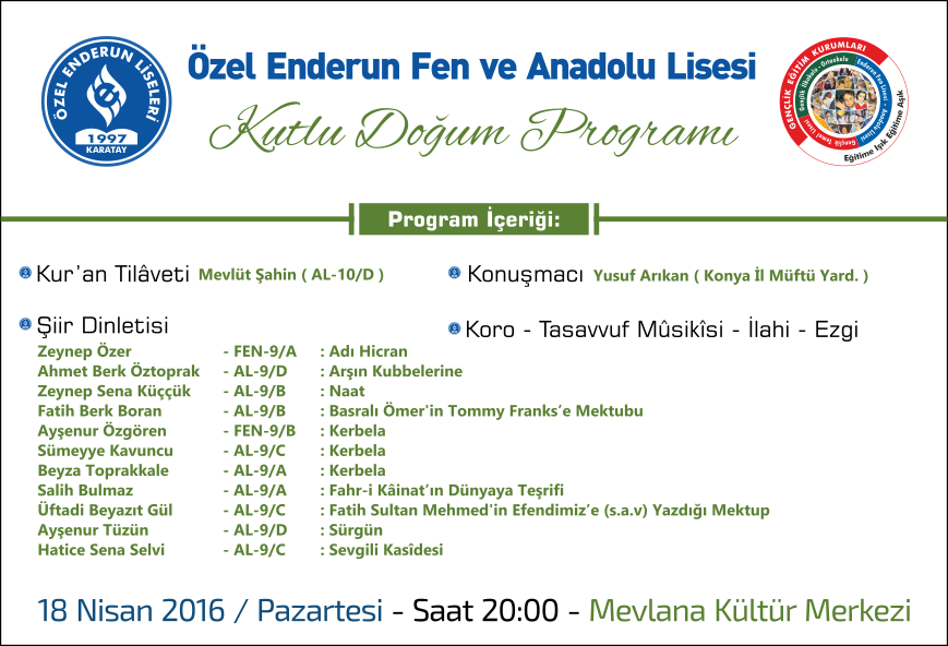 Enderun Liseleri Kutlu Doğum programı