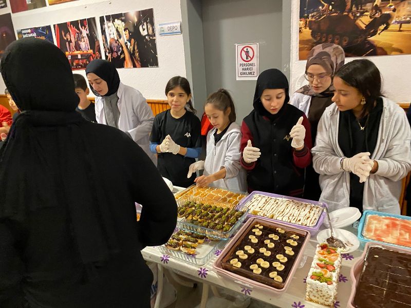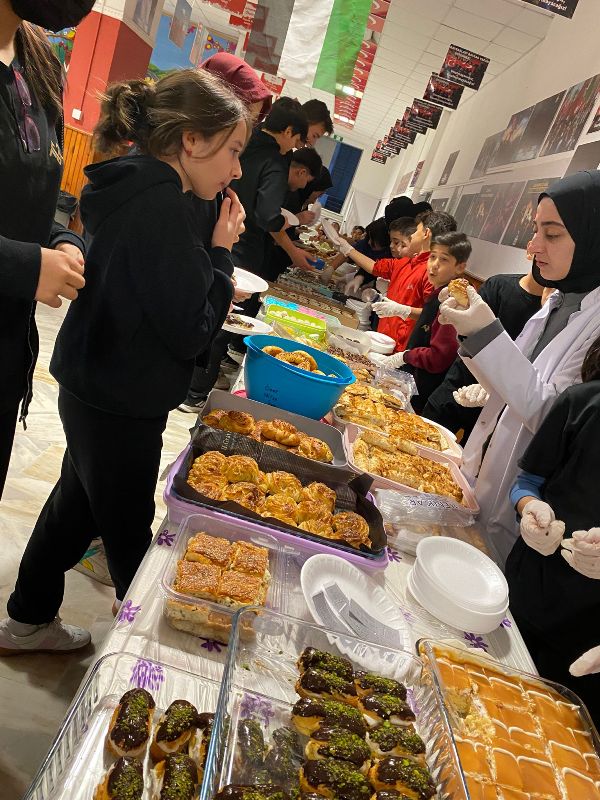 Gençlik İlkokulu ve Ortaokulu’nda, velilerimizin katkılarıyla Filistin yararına düzenlenen kermes yoğun katılımla gerçekleştirildi. Etkinlik kapsamında velilerimiz tarafından hazırlanan yiyecekler satışa sunularak renkli ve hareketli bir atmosfer oluşturdu.
