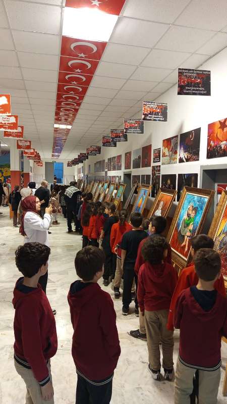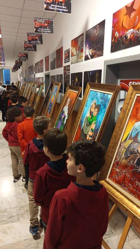 Okulumuz öğrencileri, “Gazzeli Çocuklardan Sessiz Fırçalar” adlı resim sergisini ziyaret etti. Sergide, Gazze’de yaşayan çocukların yaptığı resimler yer aldı.