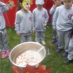 Etkinlikte konuşan okul müdürü Aliye Duman, bu etkinliğin amacının aşure geleneğini yaşatmak ve minik öğrencilere de bu geleneği öğreterek sevdirmek olduğunu ifade etti.