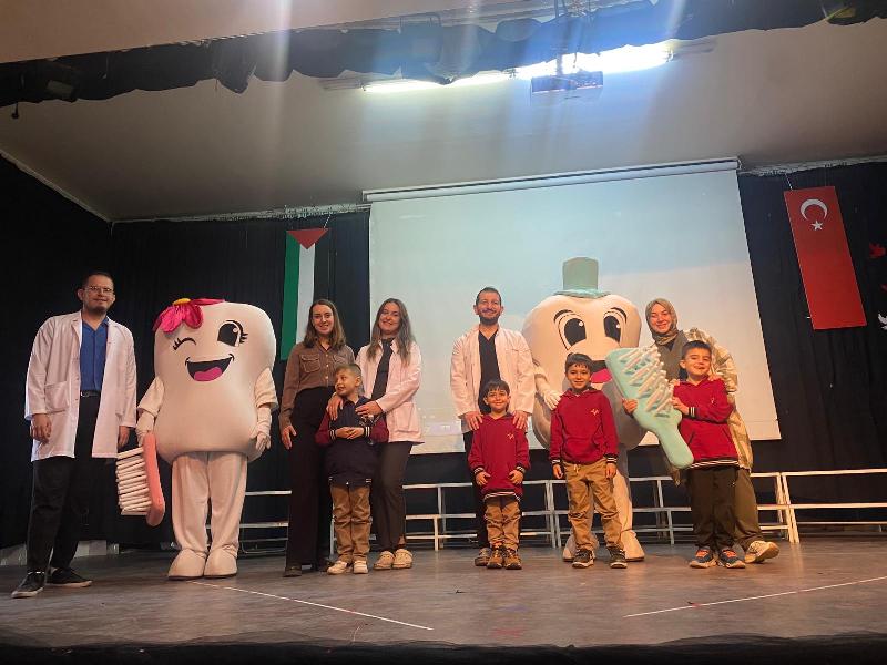 Etkinlik boyunca öğrenciler, diş fırçalamanın doğru aşamalarını uygulamalı etkinliklerle pekiştirirken, kendi deneyimlerini de paylaşarak öğrenmeye aktif biçimde katıldılar. Diş hekimleri, öğrencilerimizin sorularını tek tek yanıtlayarak ağız ve diş sağlığını korumanın yaşam boyu sürecek bir alışkanlık olduğunu vurguladı.